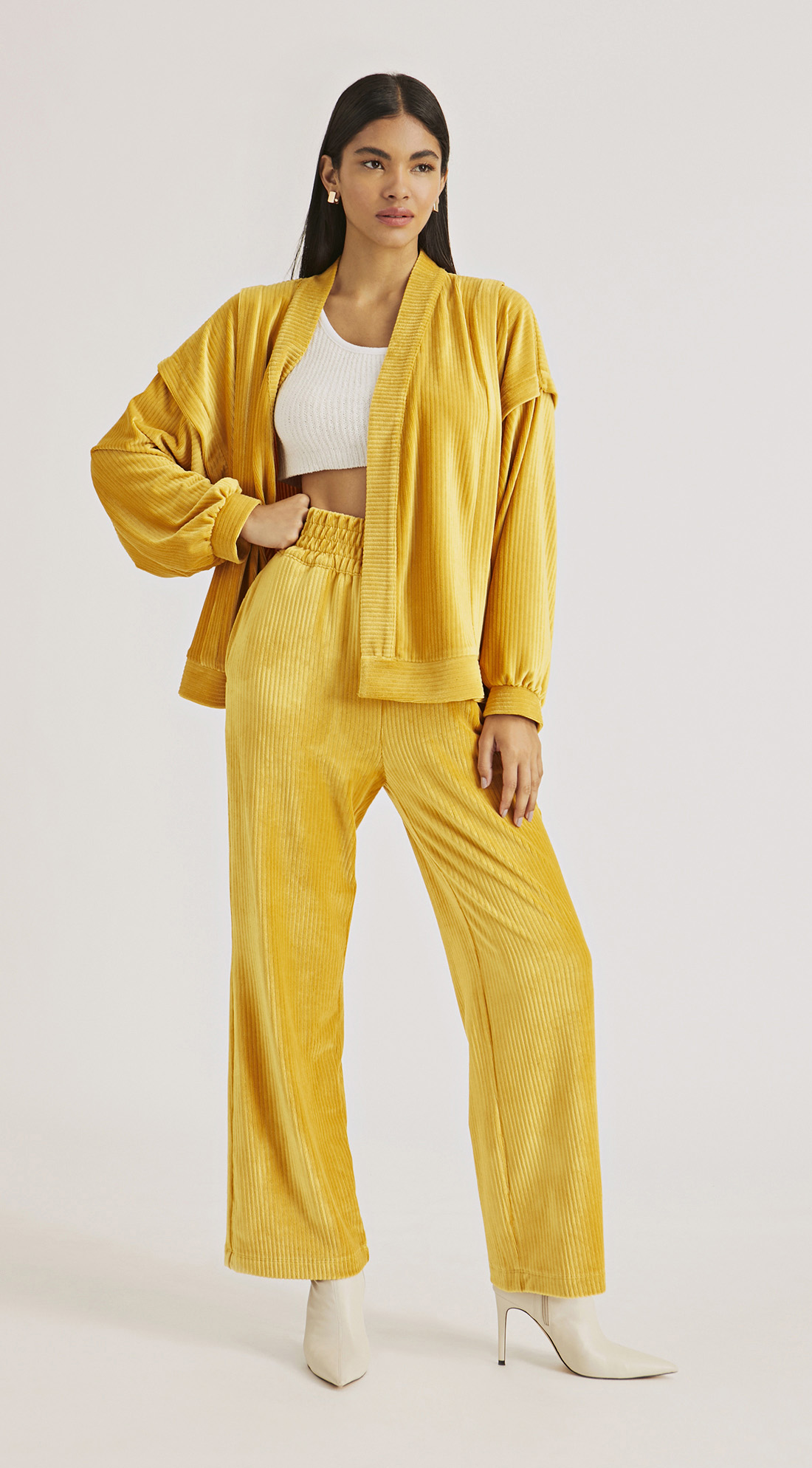 Com shape soltinho e super confortável, esta calça é confeccionada em veludo canelado, unindo estilo e praticidade. O modelo possui bolsos laterais funcionais, cós alto com elástico que dispensa zíper e garante ajuste perfeito ao corpo. Versátil, pode ser usada em diversas ocasiões, do dia a dia a produções mais arrumadinhas. Combine com cropped ou blusa por dentro para valorizar a cintura, ou aposte em uma terceira peça e salto para um look cheio de estilo!