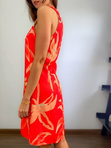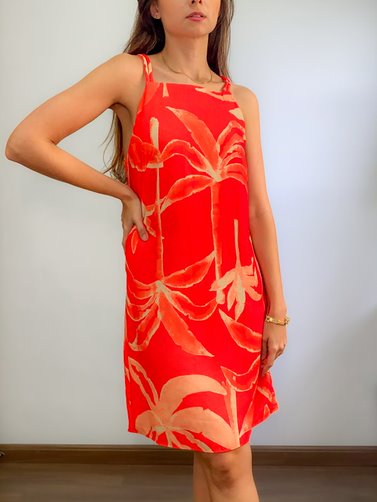 Vestido Midi Laranja com Decote Reto Morena Rosa